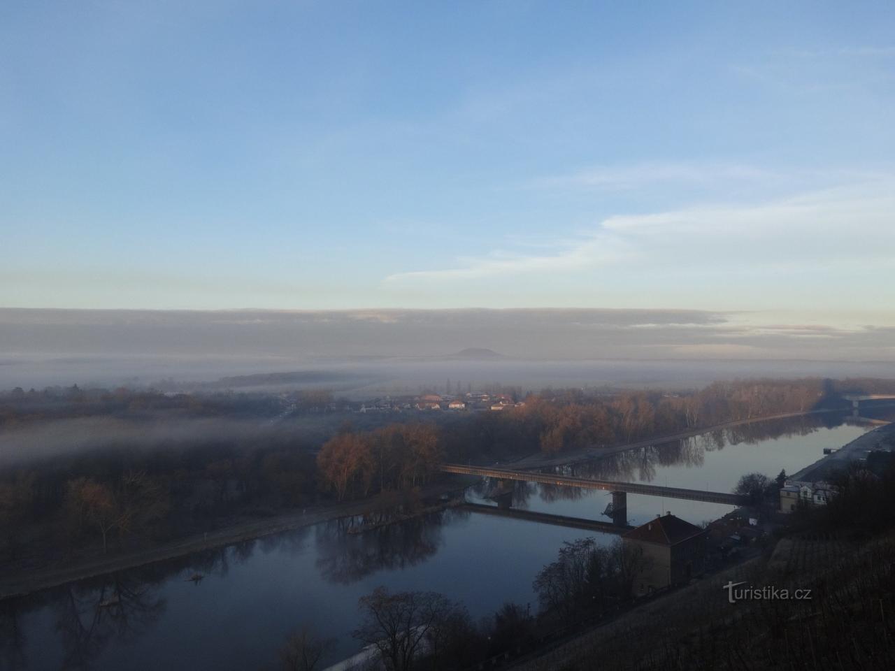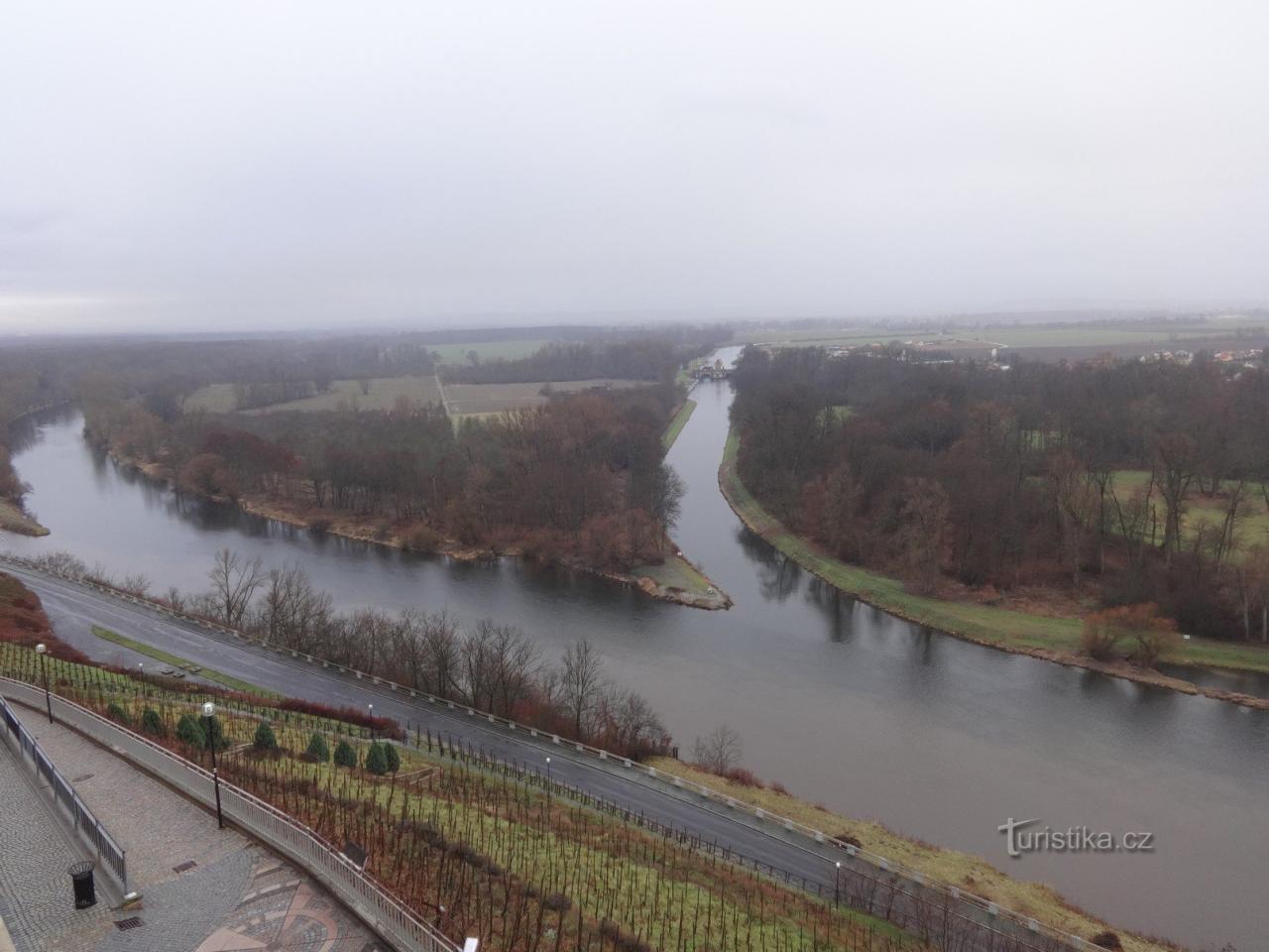 Z mělnické vyhlídky na zámecké terase je vidět památná hora Říp, za dobré viditelnosti České středohoří, ale především místo, kde končí svou pouť a zaniká největší česká řeka. Pohled od…