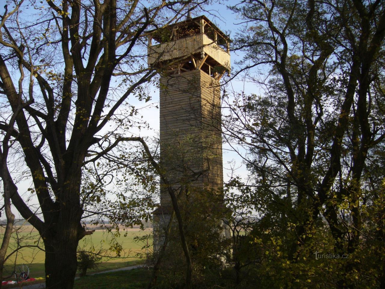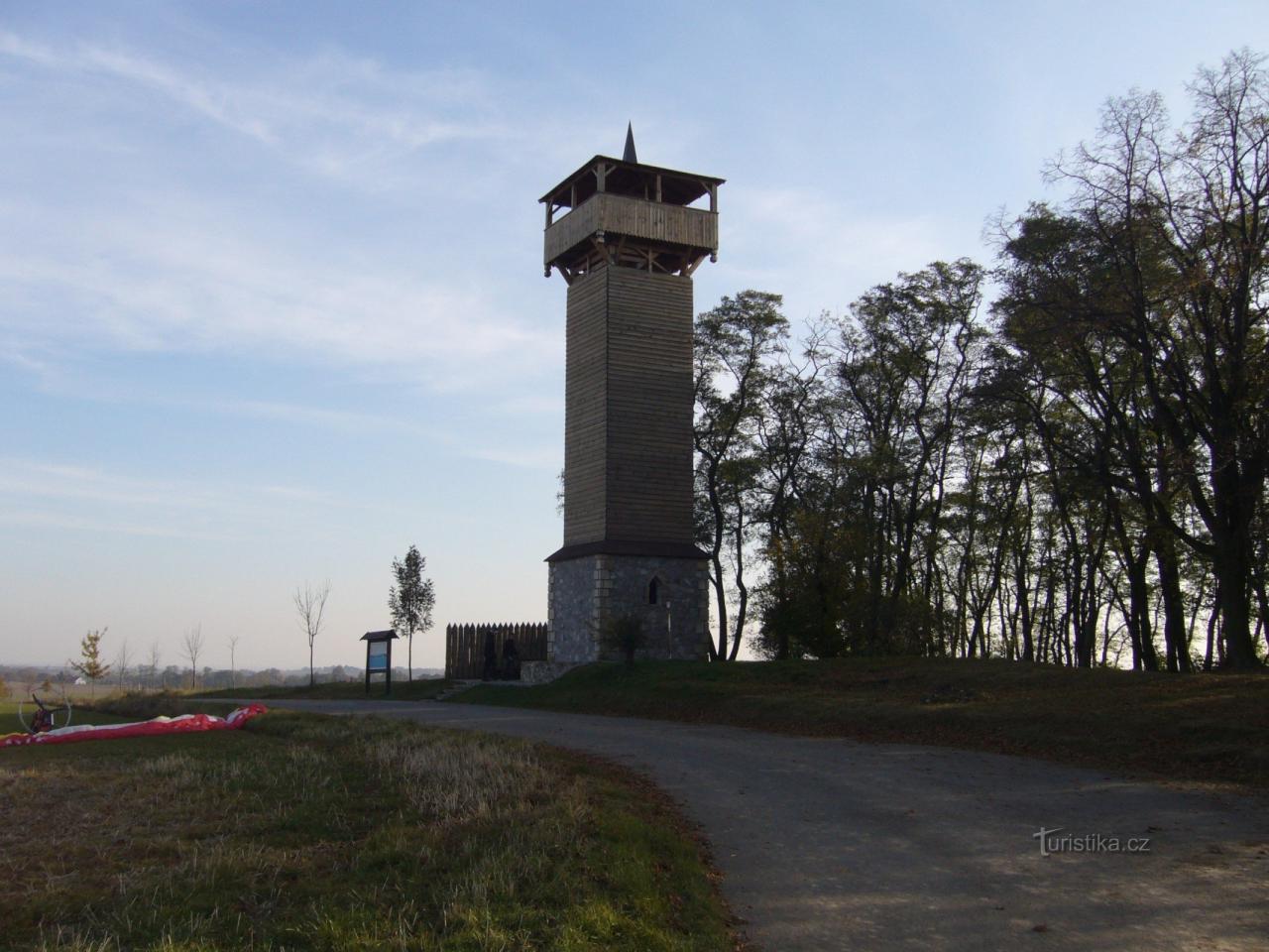 Dřevěná rozhledna s kamenným podstavcem byla postavena v roce 2006. Rozhledna má tvar strážní věže a její výška je 20 metrů. Z Ochozu se vám naskytne kruhový výhled - na Kokořínsko, Říp, České…