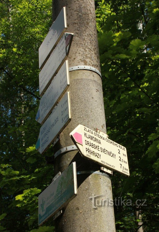 Rozcestí červené, zelené a modré turistické značky nedaleko Zásadky pod Drábskými světničkami. Červená značka tímto místem prochází, modrá a zelená zde začínají. Po červené se odsud dostaneme buď do…