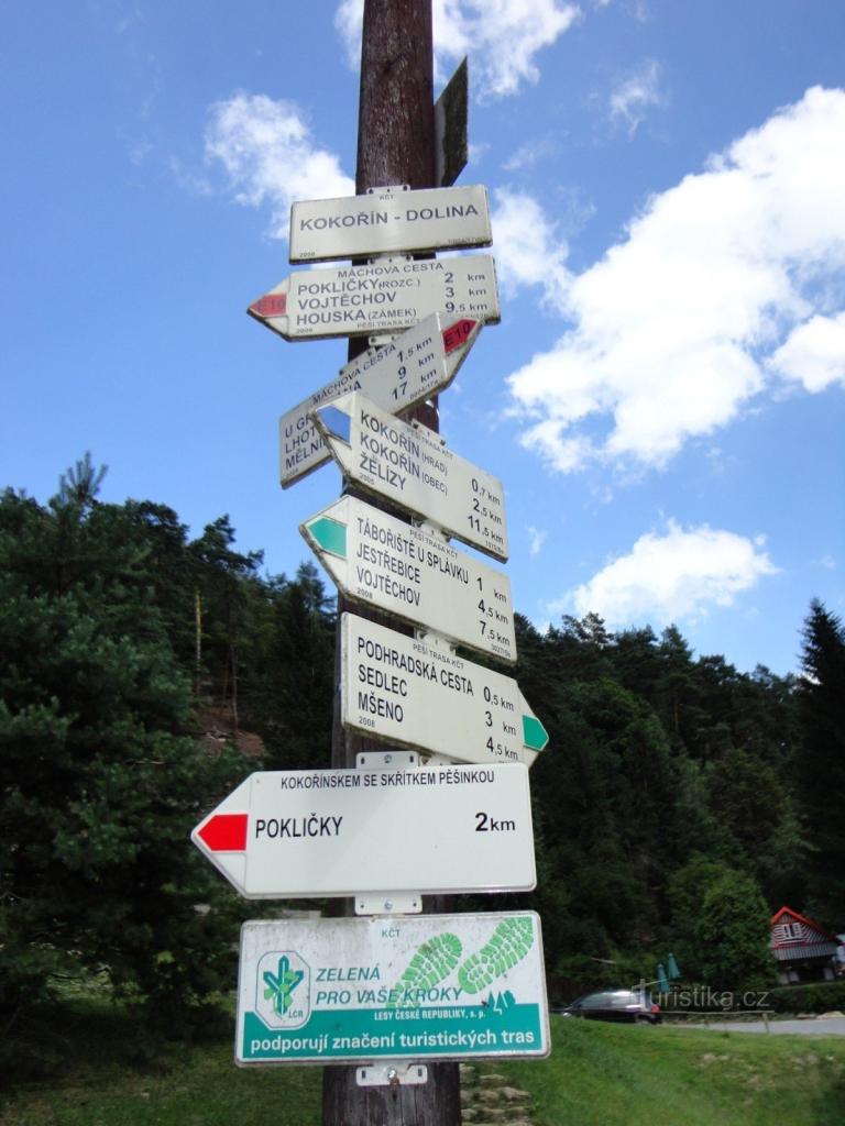 turistické rozcestí Kokořín - dolina