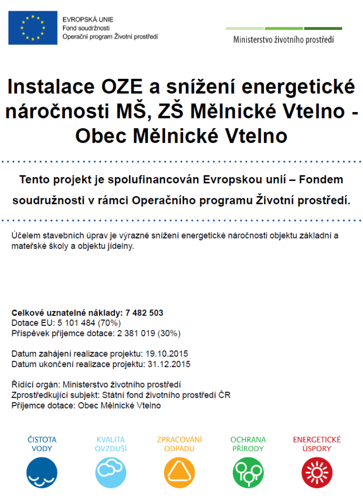 Tento projekt je spolufinancován Evropskou unií Fondem soudružnosti v rámci Operačního programu Životní prostředí.
